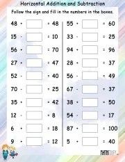 Finding free download math worksheets horizontal addition can be obvious and accessible, you can use the browser and visit websites that specialize in offering free resources. Be choosy about the websites you visit, choose well-known sites that offer high-quality, accurate downloads.